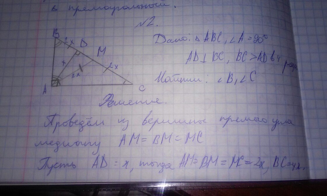 катет AD=x равен половине гипотенузы АМ=2х