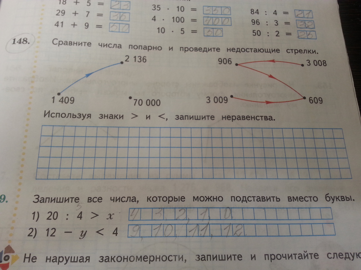 Пожалуйста помогите решить номер 148. Сравните числа попарно и проведите недостающие стрелки.