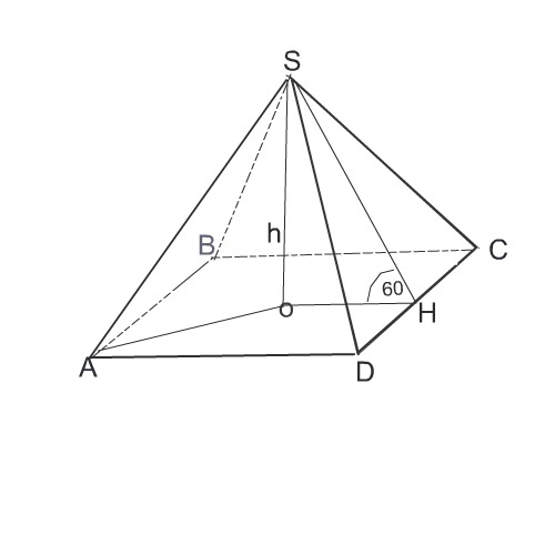 Для этого нужно знать диагональ основания AО и высоту h=SO пирамиды
