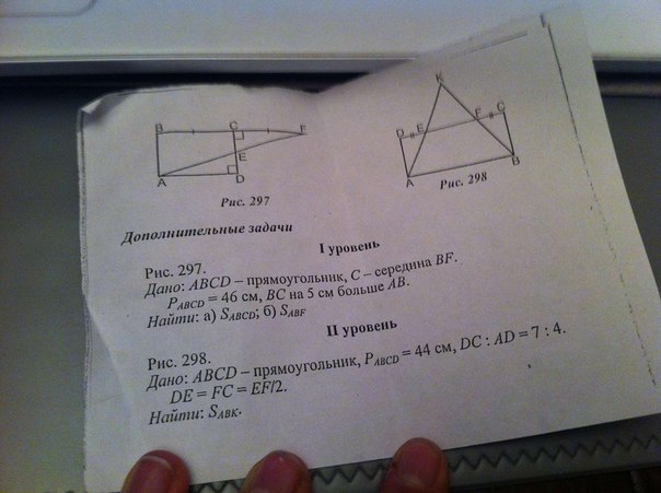 Дано ABCD прямоугольник, C-середина BF, ABCD=46 см, BC на 5 см больше AB
