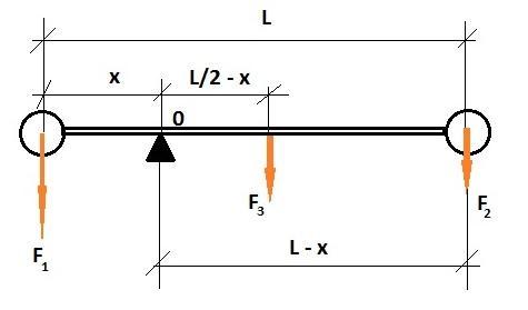 F₁·x = F₂·(L-x)+F₃·(L/2-x)