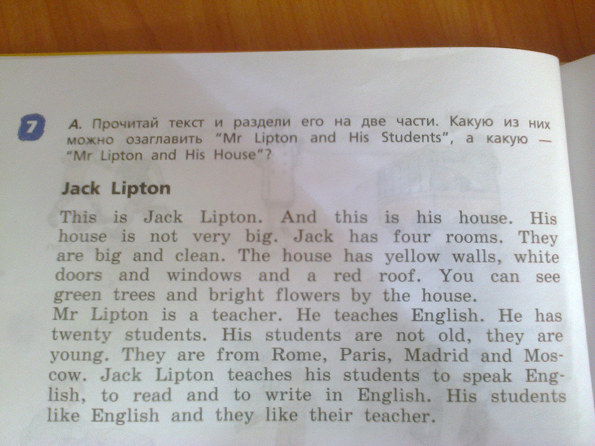 ну первый абзац это "Mr Lipton and his house", а второй "Mr Lipton and his students"