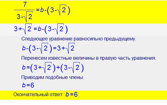 При каком значения параметра b число 3 − √(2) является корнем уравнение обыкновенная дробь 7/x=b-x