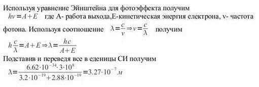 Электрон выходит из цезия с кинетической энергией 3,2*10 в -19 степени Дж. Какова max длина волны света, вызвавшей фотоэффект, если работа выхода равна 2,8