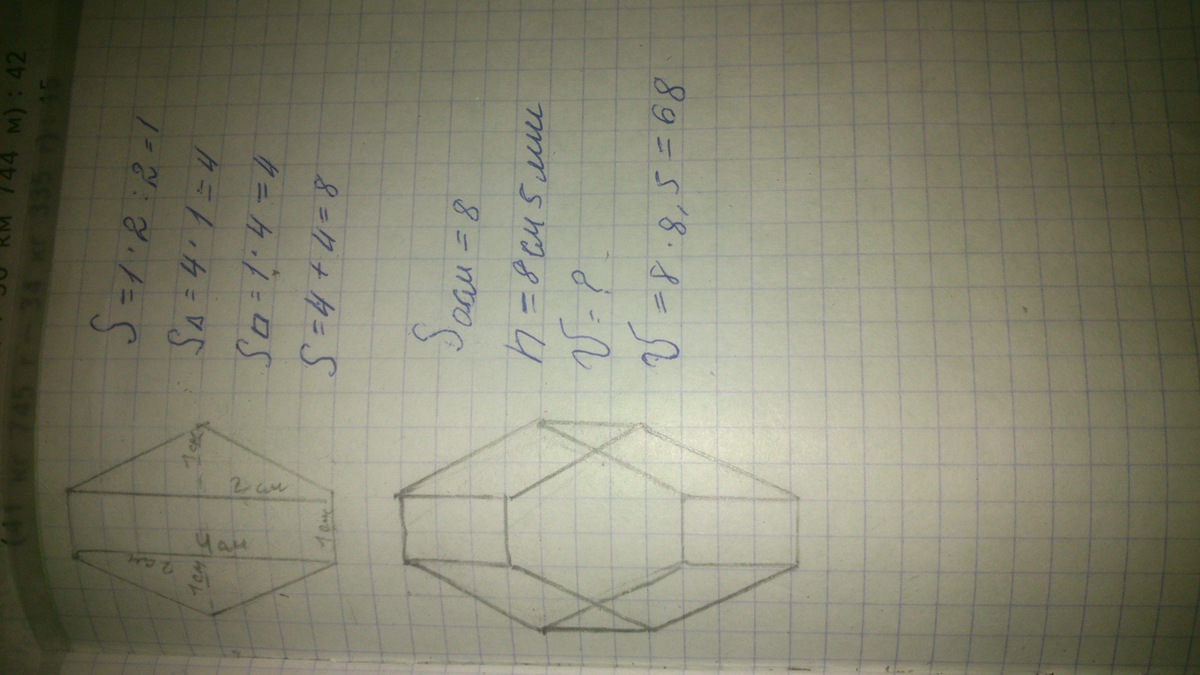Ну а дальше обьем призмы на 1м рисунке видно))) по формуле V=Sосн.*h