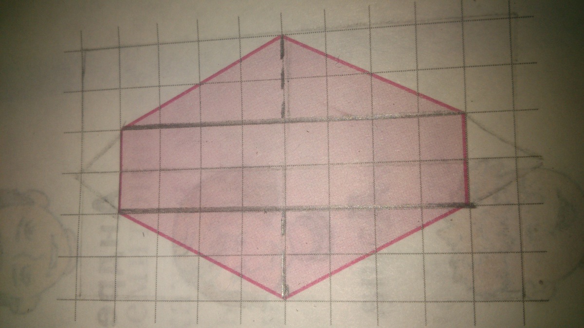 1)начерти такой шестиугольник.2)как можно найти площадь данного шестиугольника?(разделить его на части? дополнить до прямоугольника? перестроить части фигуры?)найди его площадь.3)вычисли объём призмы,основанием которой является данный шестиугольник, а высота призмы равна 8см 5 мм