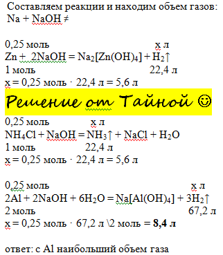 (С объяснением)укажите формулу вещества количеством 0,25 моль при взаимодействии которого с избытком раствора гидроксида натрия выделится наибольший объем газа: