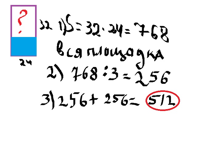 Школьная площадка прямоугольной формы имеет длину 32м и ширину 24м..Третью часть её площади занимает спортивная площадка,остальная площадь отведена под