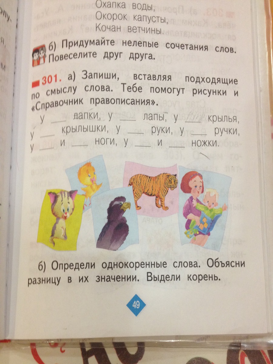 У котенка лапки, у тигра лапы, у орла крылья, у цыпленка крылышки, у мамы руки, у ребенка ручки. Дальше непонятно.