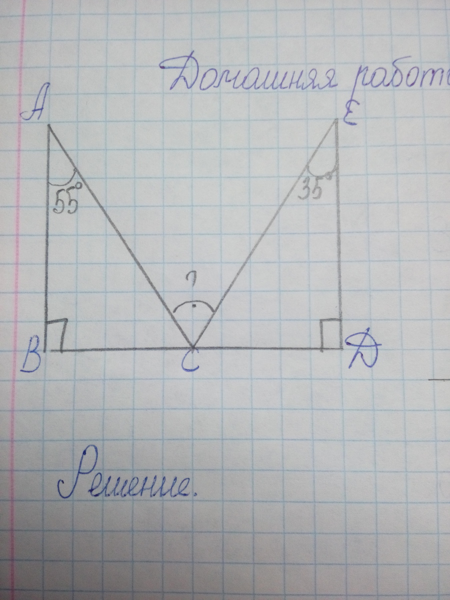 И от 180 вычесть оба этих угла,которые нашла. 180-55-35=90