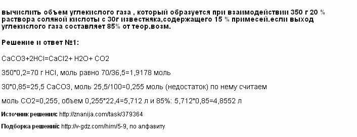 Вычислить объем углекислого газа, который образуется при взаимодействии раствора соляной кислоты с 30 г известняка содержащего 15% примесей