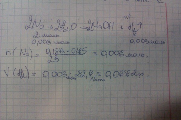 Вычислите объем водорода (н.у.), полученного при взаимодействии 184 мг натрия, содержащего 25% примесей, с водой.