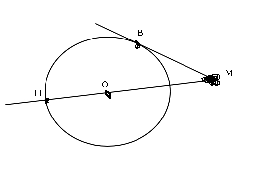 Из точки М к окружности проведены касательная МА и секущая МВ, проходящая через центр окружности О (также секущая пересекает окружность и в точке Н),