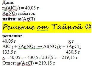 Какая масса осадка выделится в результате реакции обмена между раствором, содержащим 40,05 г хлорида алюминия, и избытком раствора нитрата серебра.