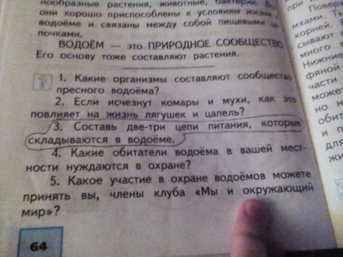 Сотавьте две три цепи питания которые складываются в пресном водоёме. Окружающий мир - 3класс