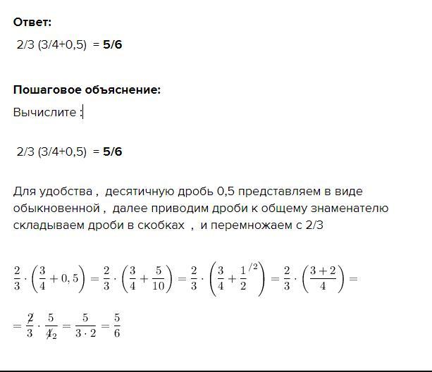 Для удобства , десятичную дробь 0,5 представляем в виде обыкновенной , далее приводим дроби к общему знаменателю складываем дроби в скобках , и перемножаем с 2/3