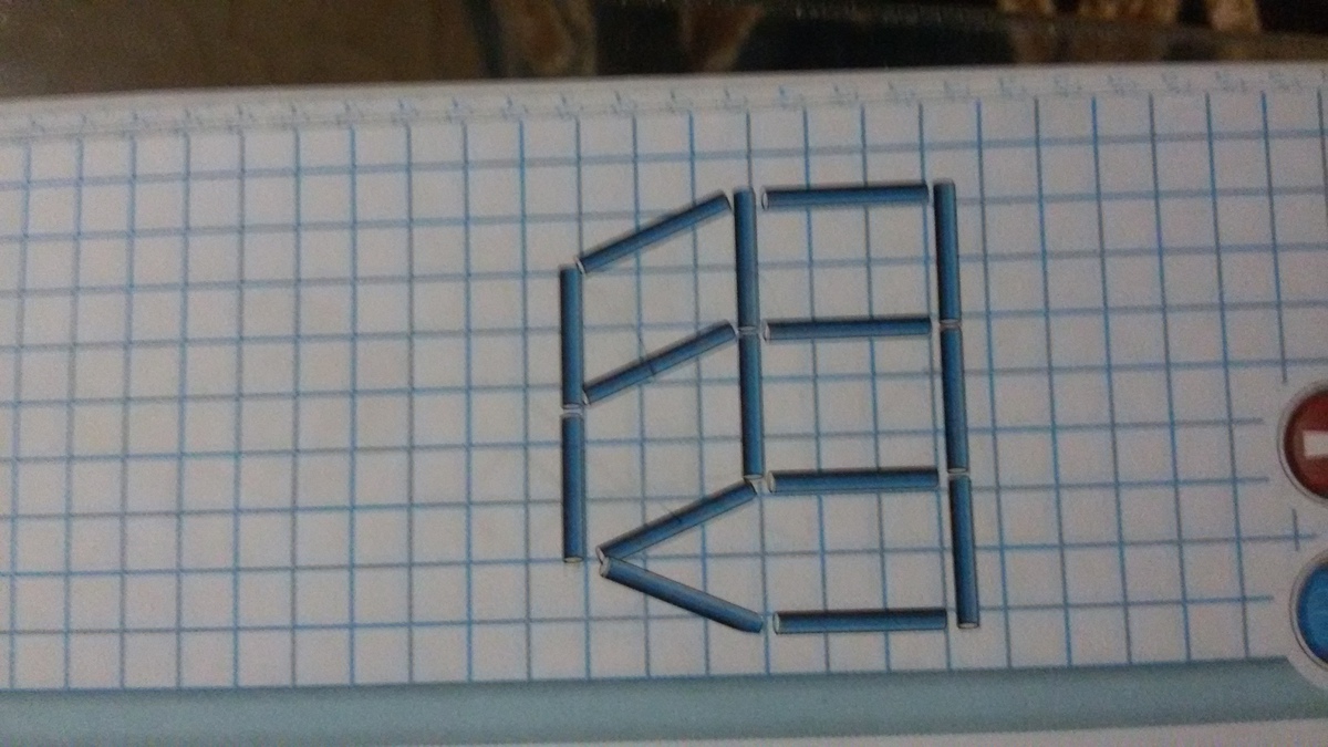 помогите пожалуйста)переложите 3 палочки так,чтобы домик повернулся в другую сторону