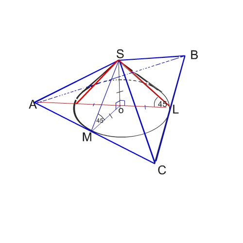 Образующую - апофему SL сторонвы СSB - найдем из равнобедренного прямоугольного треугольника SОL.