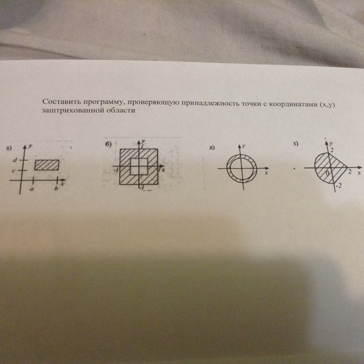 Составить программу, проверяющую принадлежность точки с координатами (x,y) заштрихованной области.