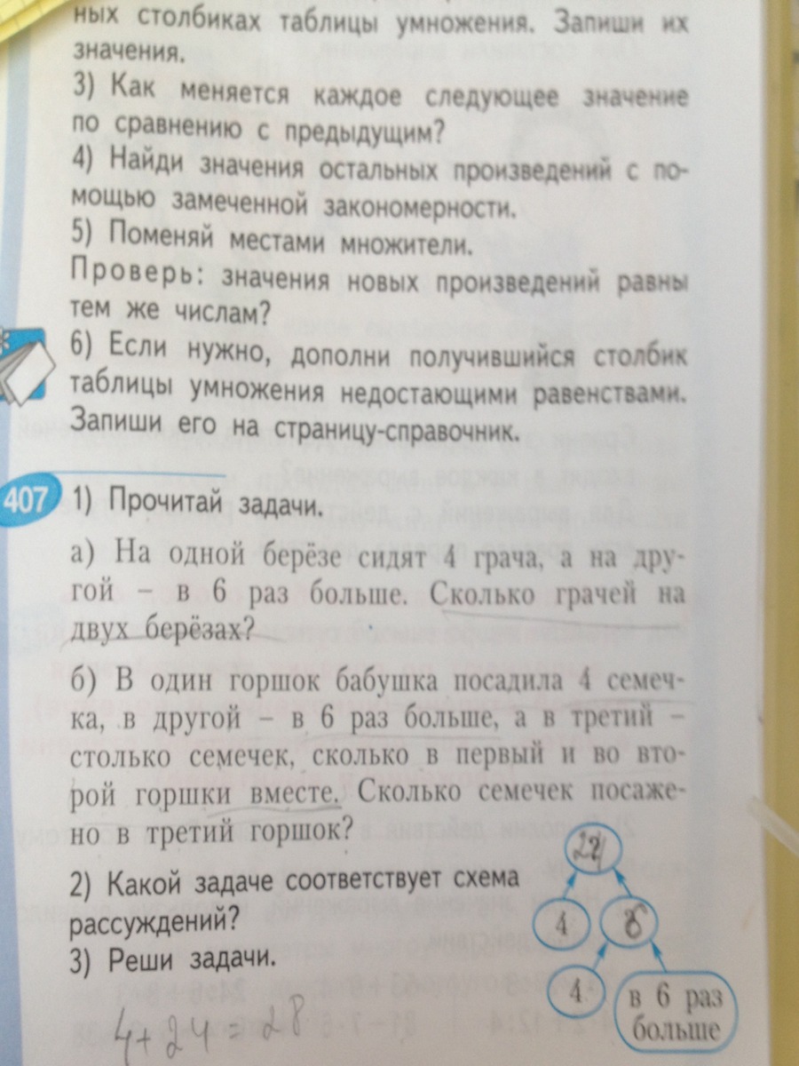 2) 4 + 24 = 28 (сем) всего посадила бабушка в 1-ый и 2-ой горшок