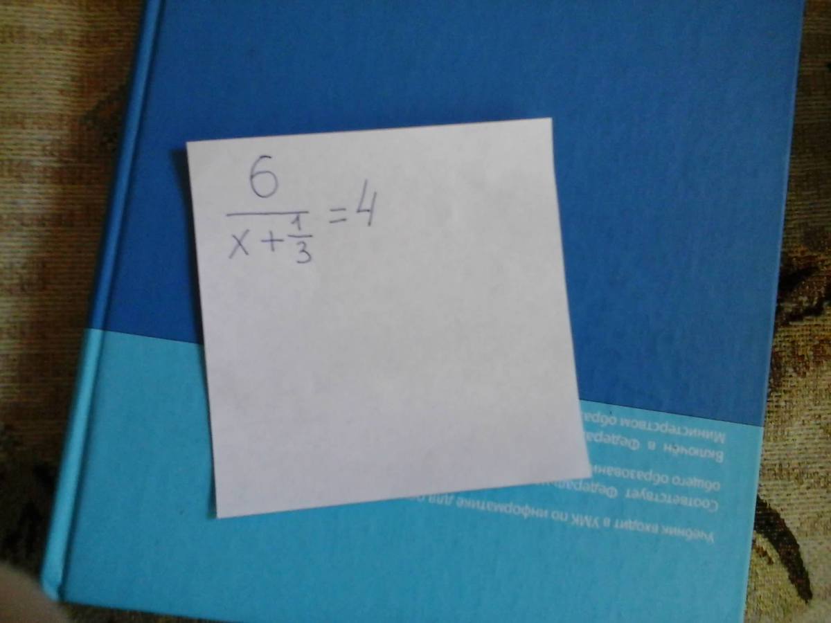 \frac{6}{x+ \frac{1}{3} } =4 \\ 6=4*(x+ \frac{1}{3} ) \\ 4x+1 \frac{1}{3} =6 \\ 4x=6-1 \frac{1}{3}  \\ 4x=4 \frac{2}{3}  \\ x= \frac{14}{3} * \frac{1}{4}  \\ x= \frac{7}{6}  \\ x=1 \frac{1}{6}