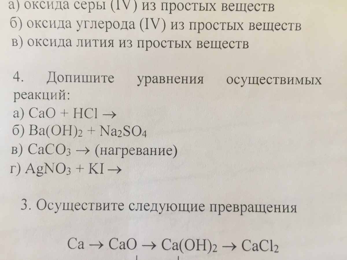 в) caCO3 = CaO + CO2