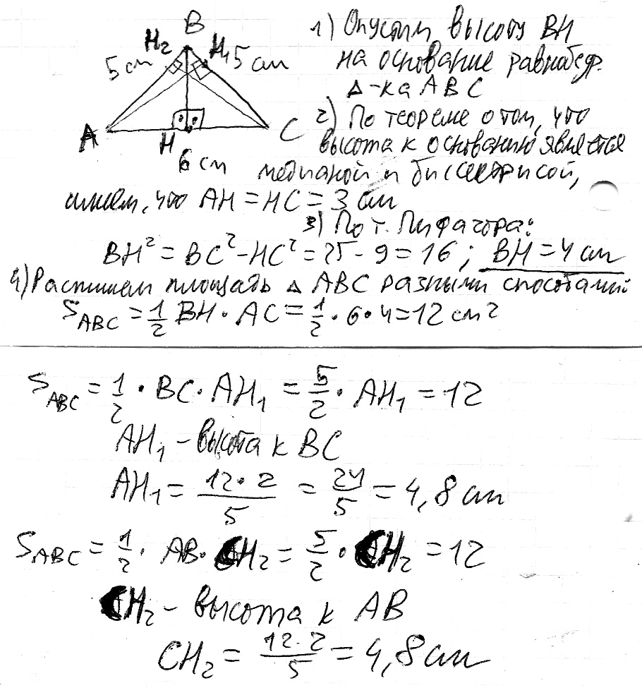найдите высоты треугольника со сторонами 5 см 5 см и 6 см ( и еще рисунок )