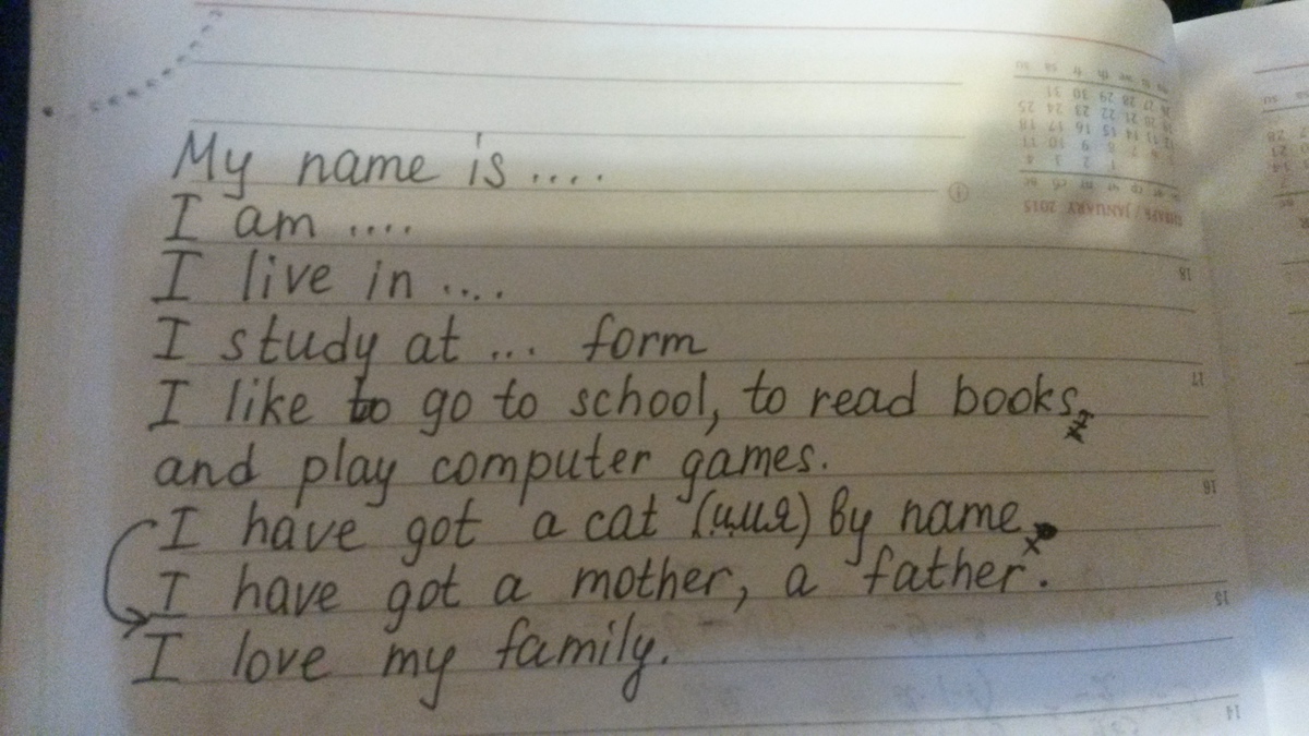 меня есть кот ....... и........ Мою маму зовут ......., а папу ......... Я люблю свою семью!