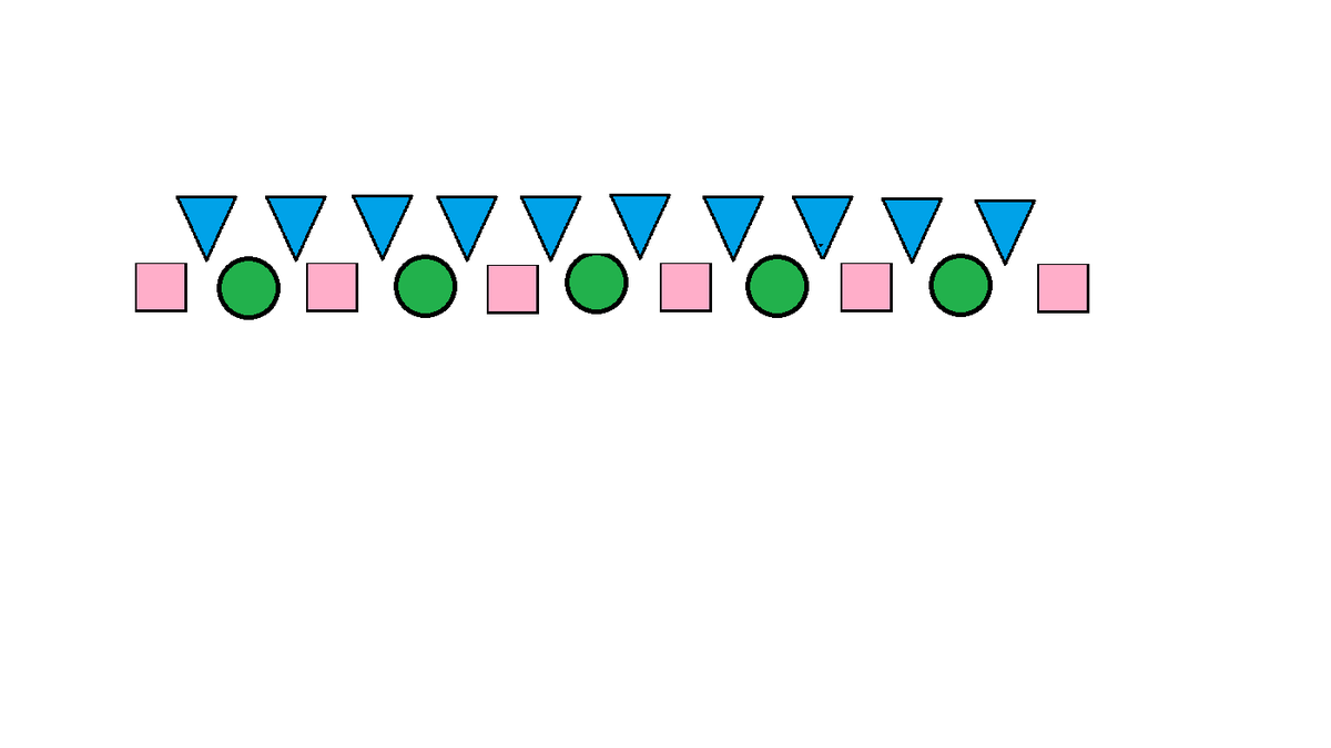 в ряд лежали 6 квадратных фишек. Между каждыми двумя соседними фишками соня положила круглую фишку. Потом Ярик между каждыми соседними фишками в новом ряду положил по треугольной фишке. сколько фишек положил Ярик?