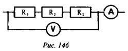 3. Определите по схеме общее сопротивление цепи и показания амперметра, если R1 = 5 Ом, R2 = 10 Ом, R3 = 15 Ом, а вольтметр показывает 60 В