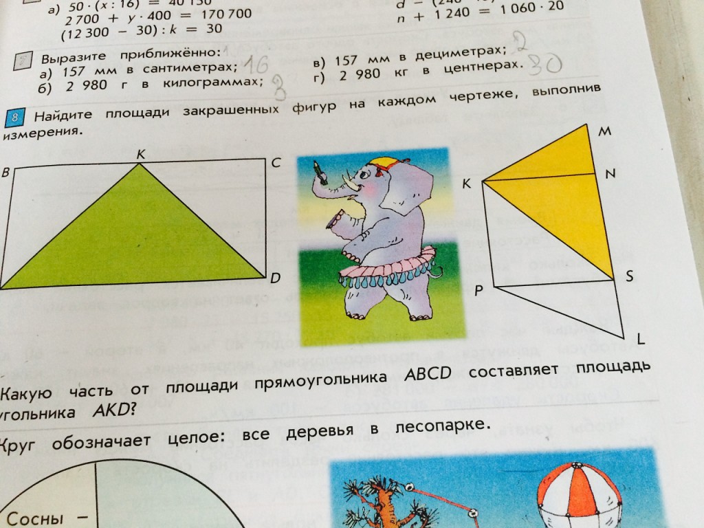 Измерь весь прямоугольник, а потом весь треугольник. А потом отнеми