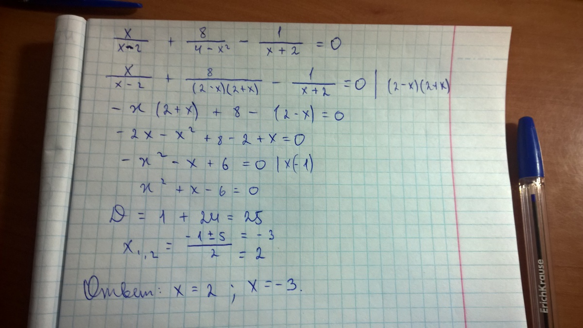 х/ х-2 + 8/ 4-х2 - 1/х+2 = 0