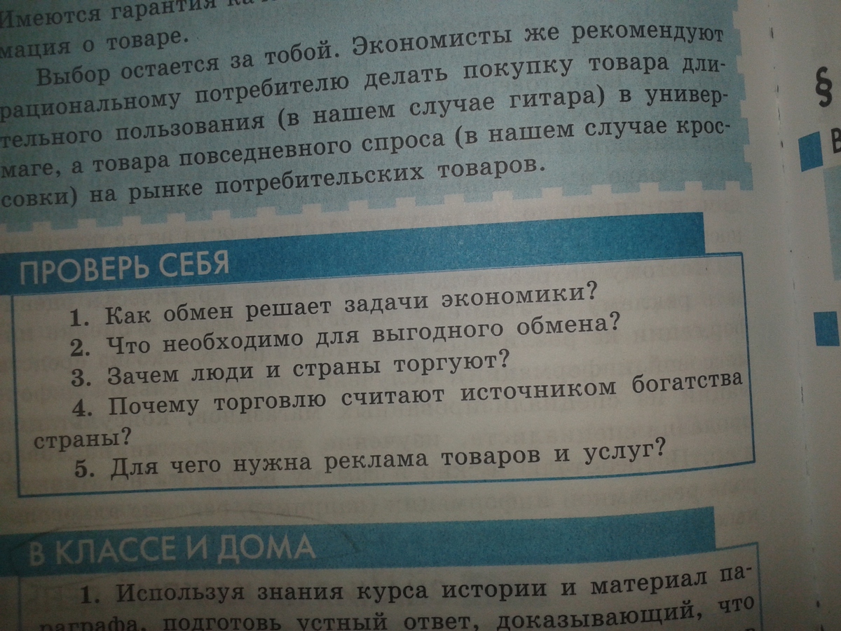 Обмен решает задачи (что и как производить, для кого производить) тем, что восполняет нехватку ресурсов, и делает возможной работу во многих отраслях. Отсюда происходит специализация, разделение труда, повышается качество продукции.