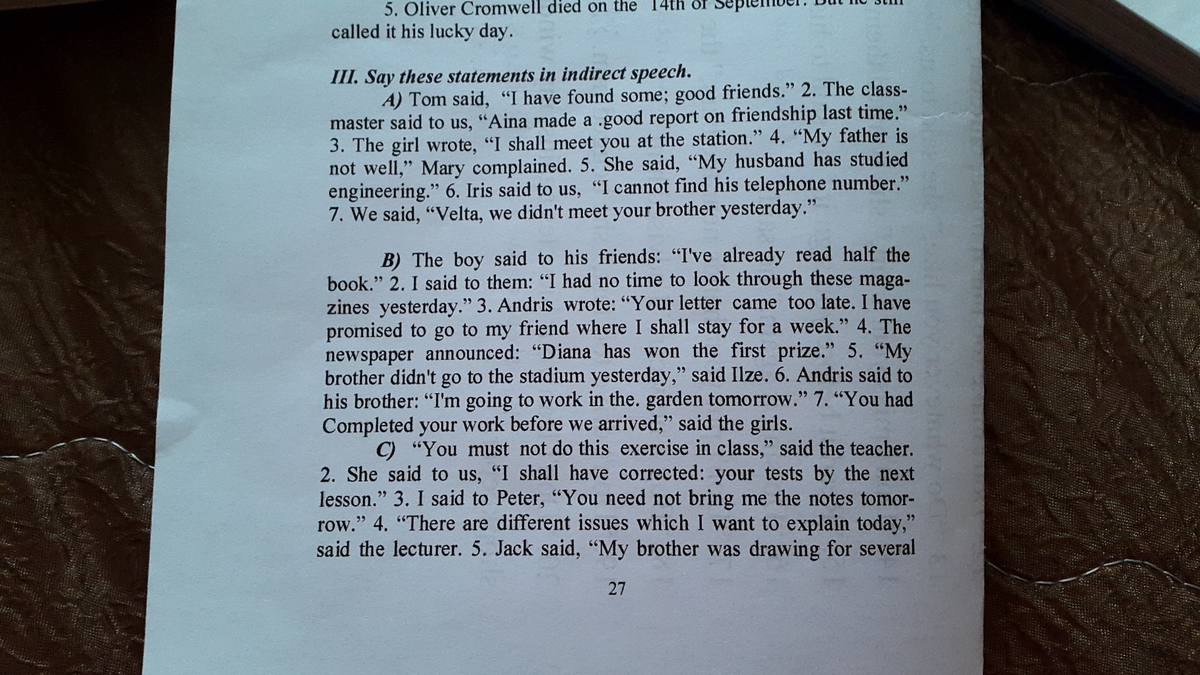 5. Ilze said that her brother hadn't gone to the stadium the day before.