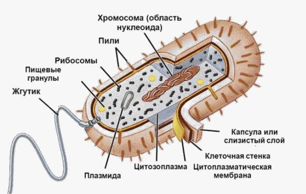 1-я картинка - строение бактерии, 2-я картинка - строение вируса.