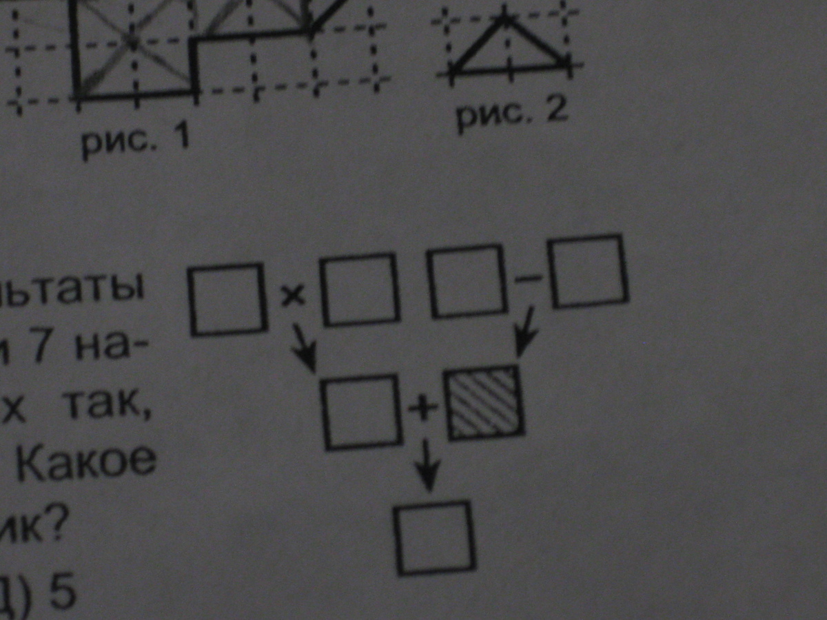 стрелочки на рисунке указывают на результаты действий с числами.Числа 1,2,3,4,5,6 и 7 надо разместить по одному в квадратиках так,чтобы все результаты были правильными.Какое число попадёт в заштрихованный квадратик?"