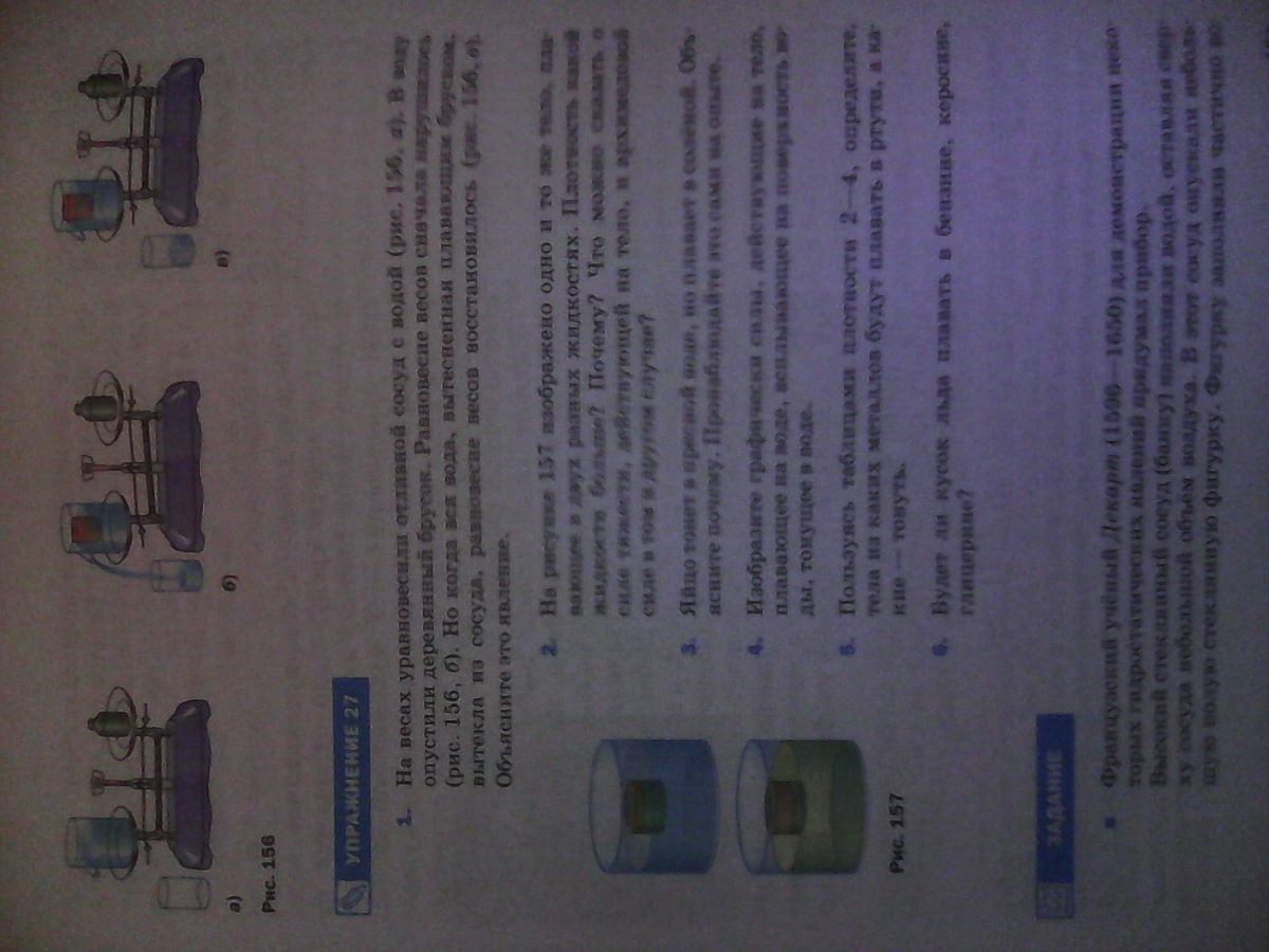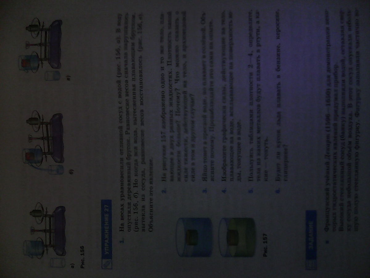 1. Закон Архимеда. Брусок вытеснил количество жидкости, равное его весу. Сила Архимеда уравновесила силу тяжести (лишняя вода вытекла, установилось равновесие.)