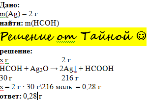 Муравьиный альдегид восстановили оксидом серебра и получилось 2г серебра. Найти массу окисленного альдегида