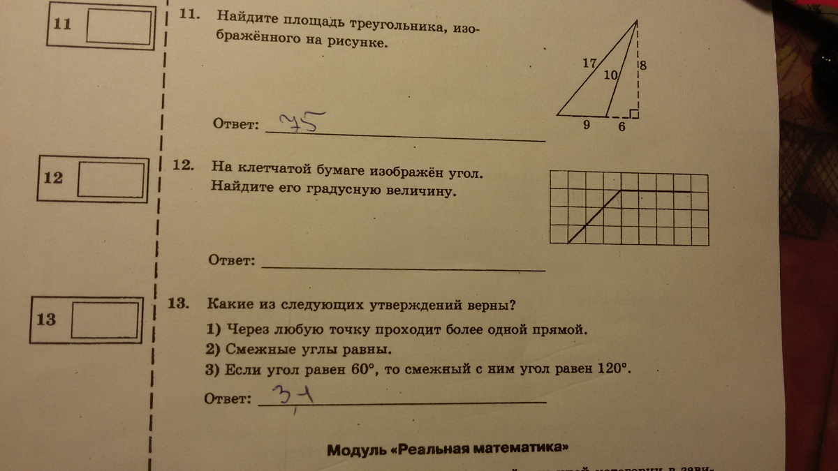 тогда: клетка-это квадрат, значит угол 90 град.