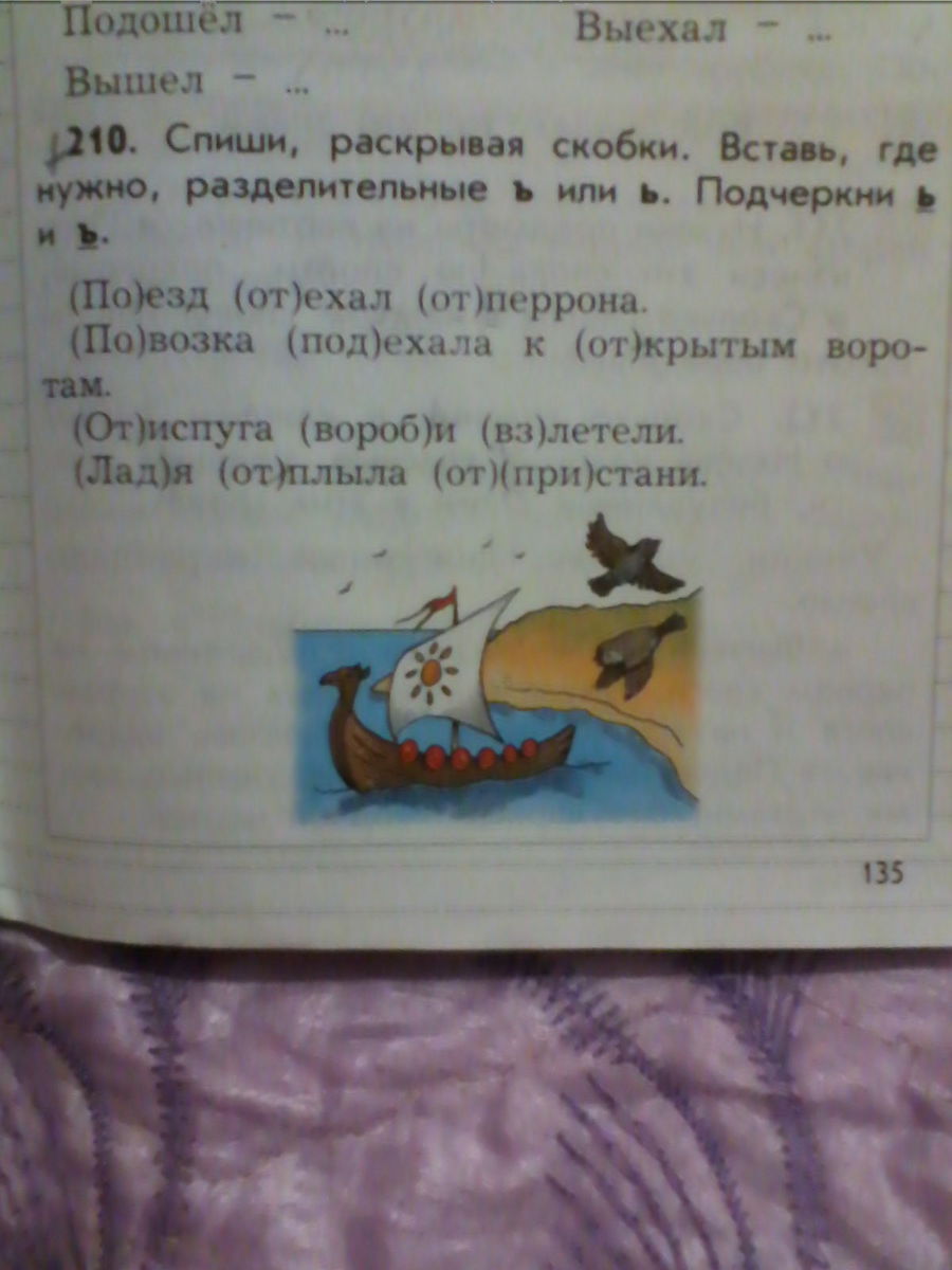 Поезд отъехал от перрона.Повозка подъехала к открытым воротам.От испуга воробьи взлетели.Ладья отплыла от пристани.