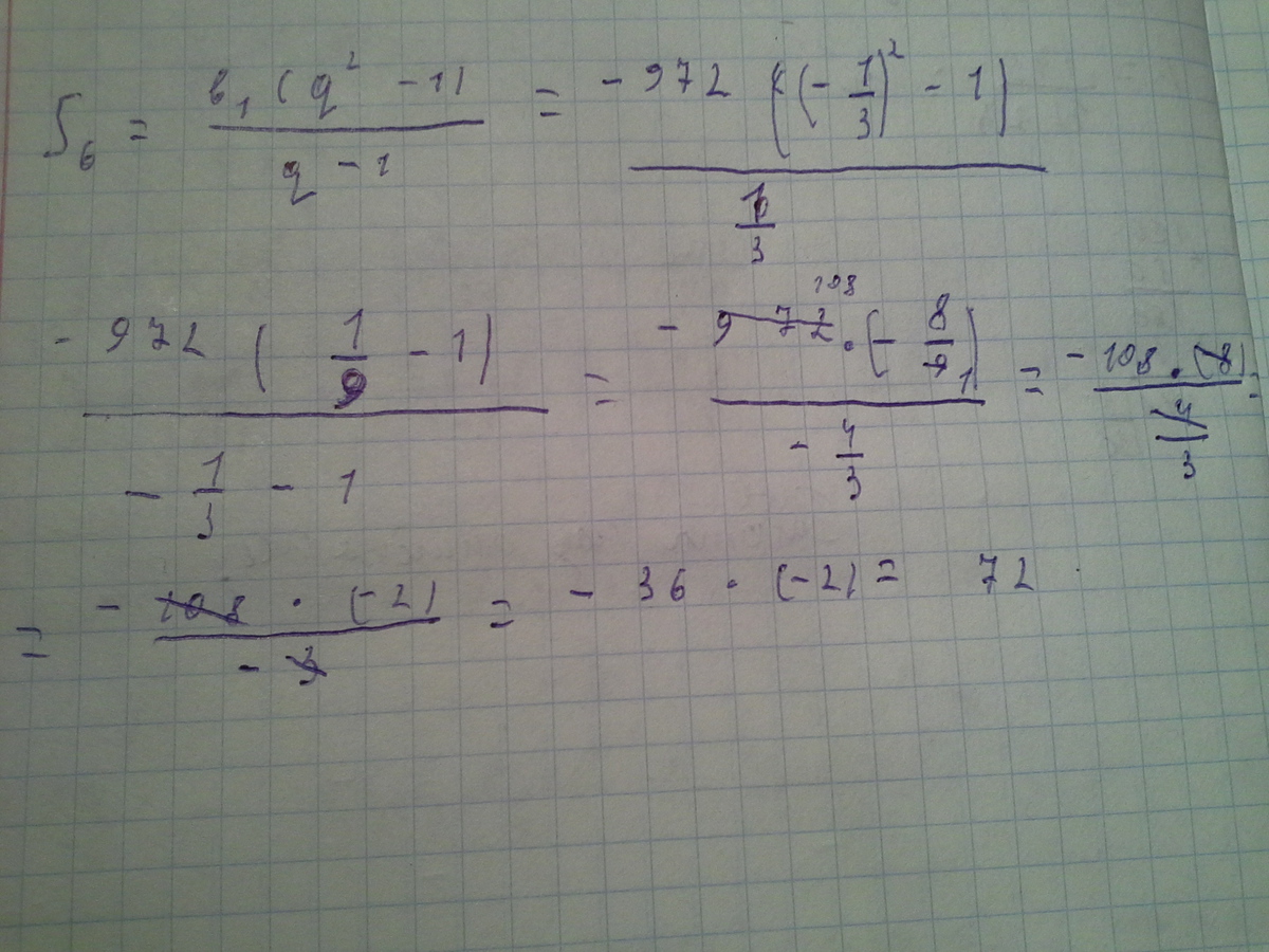 b1=-972 b2= 324 q=324/-972 сокращаем получаем 1/3