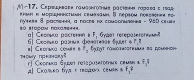 д) Вероятность появления в F2 растений с гладкими семенами = 3/4 = 75%. Количество гладких семян = 960 * 0,75 = 720 (растений).