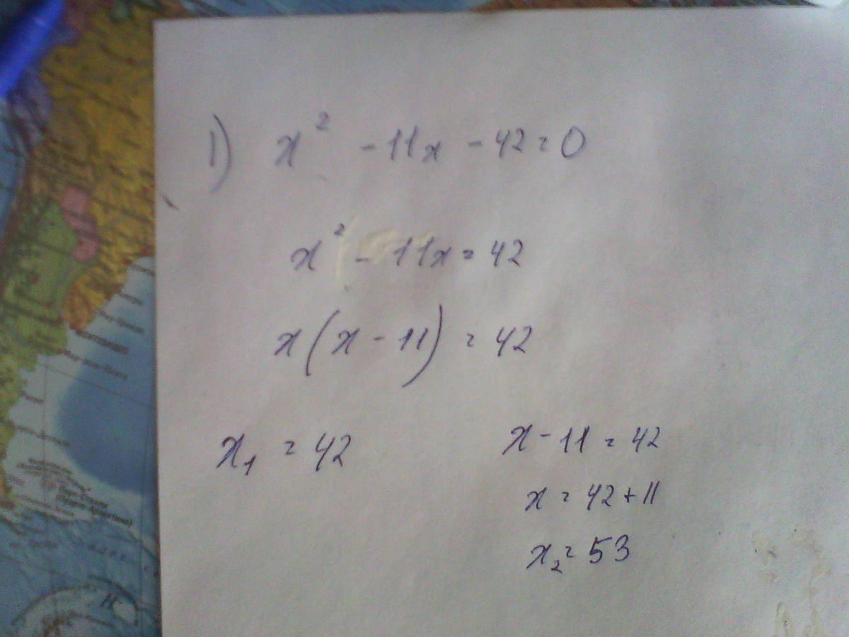 D=(-11)²-4*(-42)*1=121+168=289=17²
