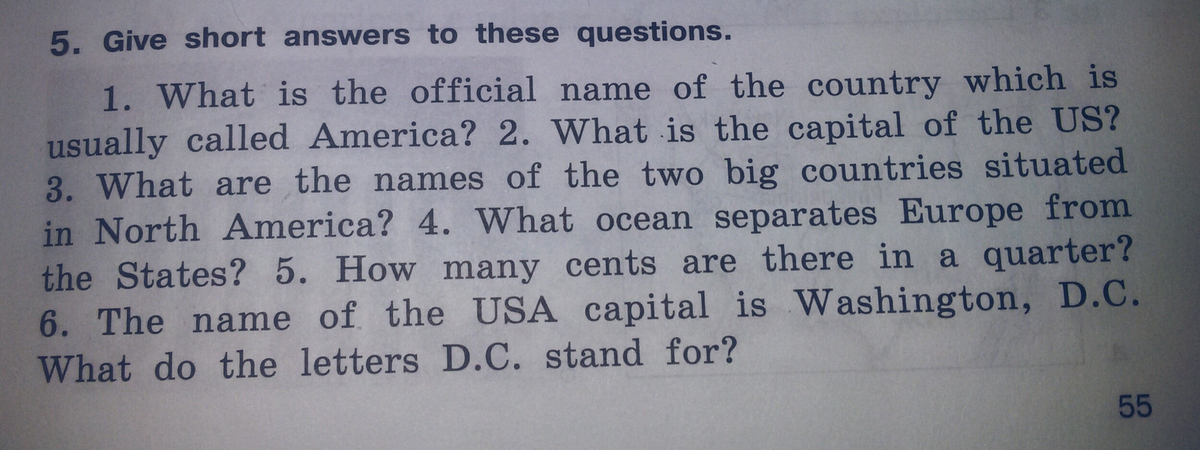 но отвечать , конечно, нужно по всем правилам, а не просто USA... и т.д например ответ на первый вопрос: The official name of America is the United States of America.