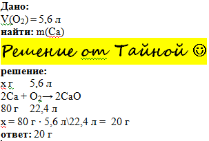 Какая масса кальция может вступить в реакцию с 5,6 л кислорода (н.у.)? Если можно, то напишите подробное решения пожалуйста