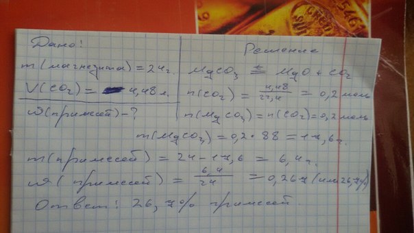минерал магнезит содержит карбонат магния и примеси при нагревании разложили 24 г магнезита получив при этом 4,48 л углекислого газа