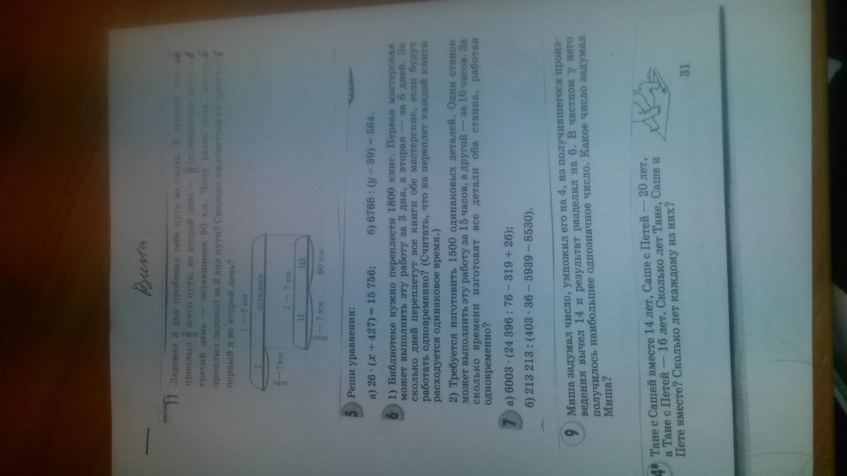 номер 9. ((y x 4)- 14) : 6 = 9 решаем и получаем простое уравнение 2y-7=27