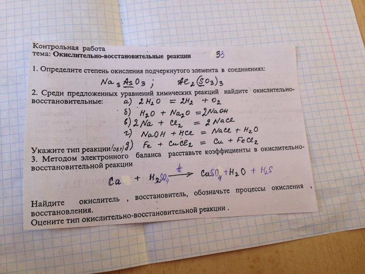 1 задание. Степень окисления As +3, степень окисления S +4