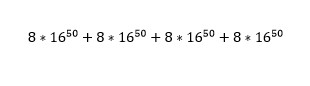 Вся сумма = 8*16^50 + 8*16^50 + 8*16^50 + 8*16^50 = 4*8*16^50 = 32*16^50 = 2*16*16^50 =