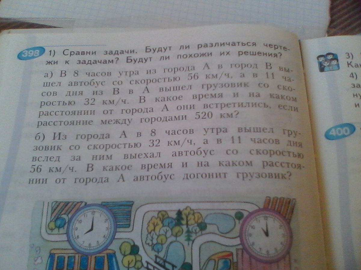 7) 3+4=7 (ч) первый автобус встретился со вторым